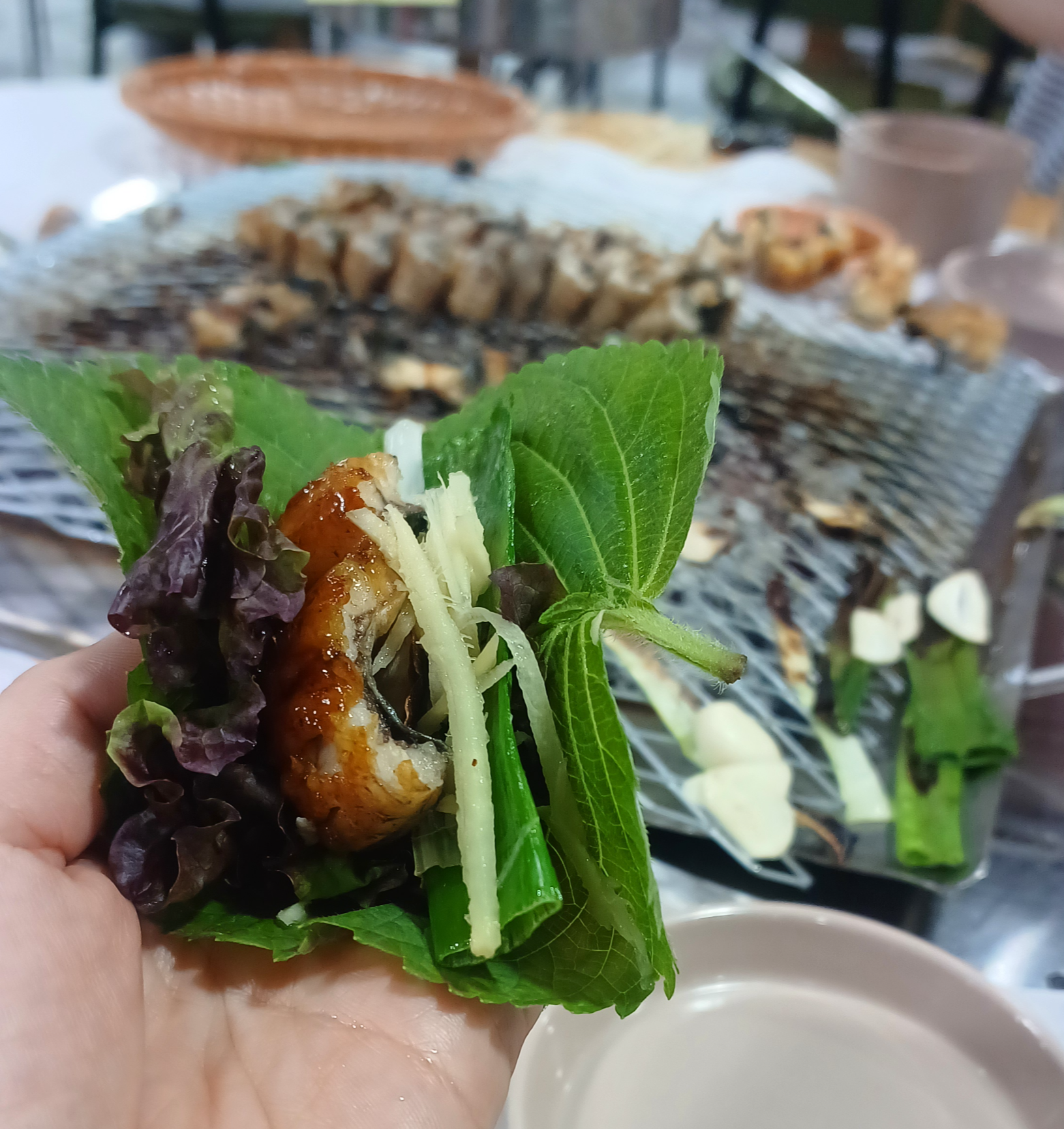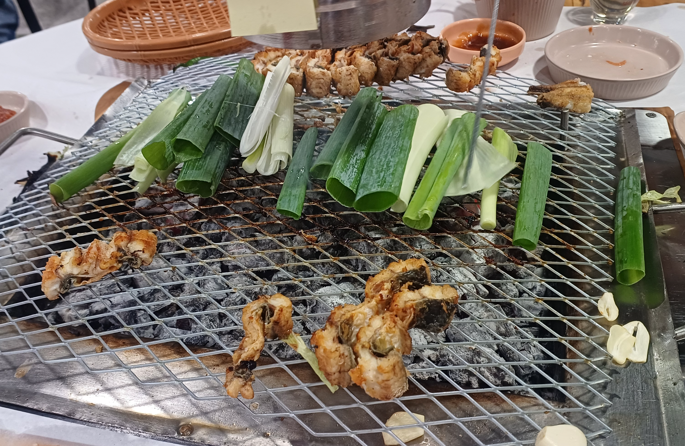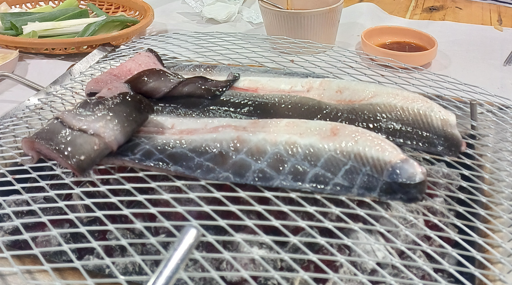 * 다양한 메뉴: 기본적인 민물장어 외에 산삼장어도 있어 취향에 따라 선택할 수 있습니다. 장어와 곁들여 먹기 좋은 양파절임, 콩나물무침, 백김치, 생강채 등 다양한 밑반찬이 제공되며, 셀프바에서 자유롭게 리필 가능합니다. 식사 메뉴로는 잔치국수, 누룽지, 장어탕 등이 있습니다.