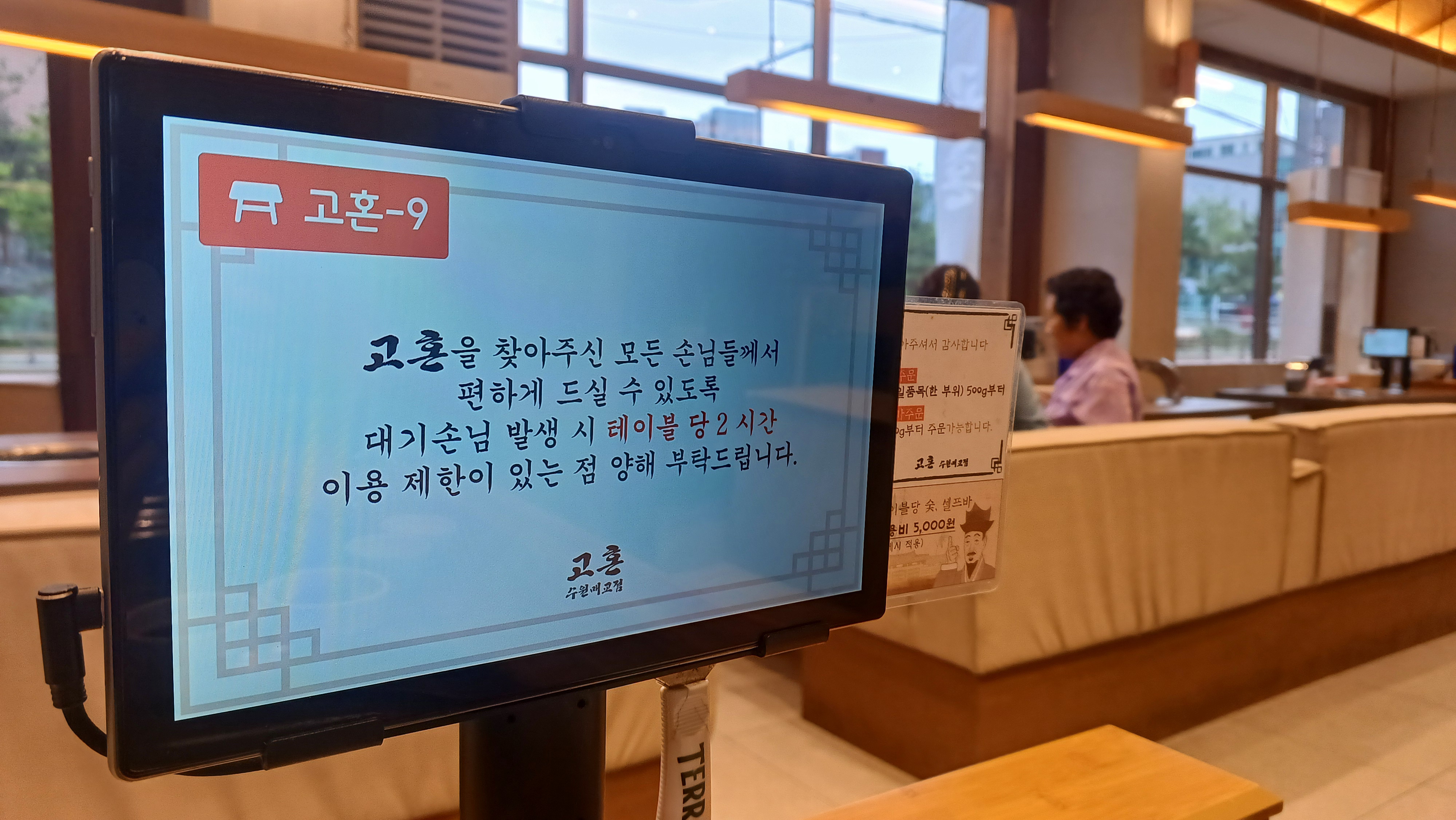 태블릿에는 가장 먼저 테이블 이용에 대한 안내가 떴어요: