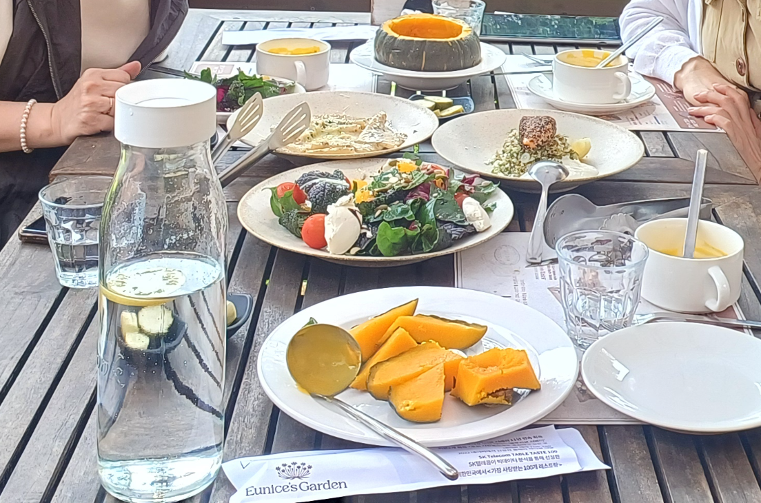 유니스의 정원에는 아름다운 정원을 바라보며 식사를 즐길 수 있는 레스토랑과 향긋한 커피와 맛있는 빵을 맛볼 수 있는 베이커리 카페가 있습니다.