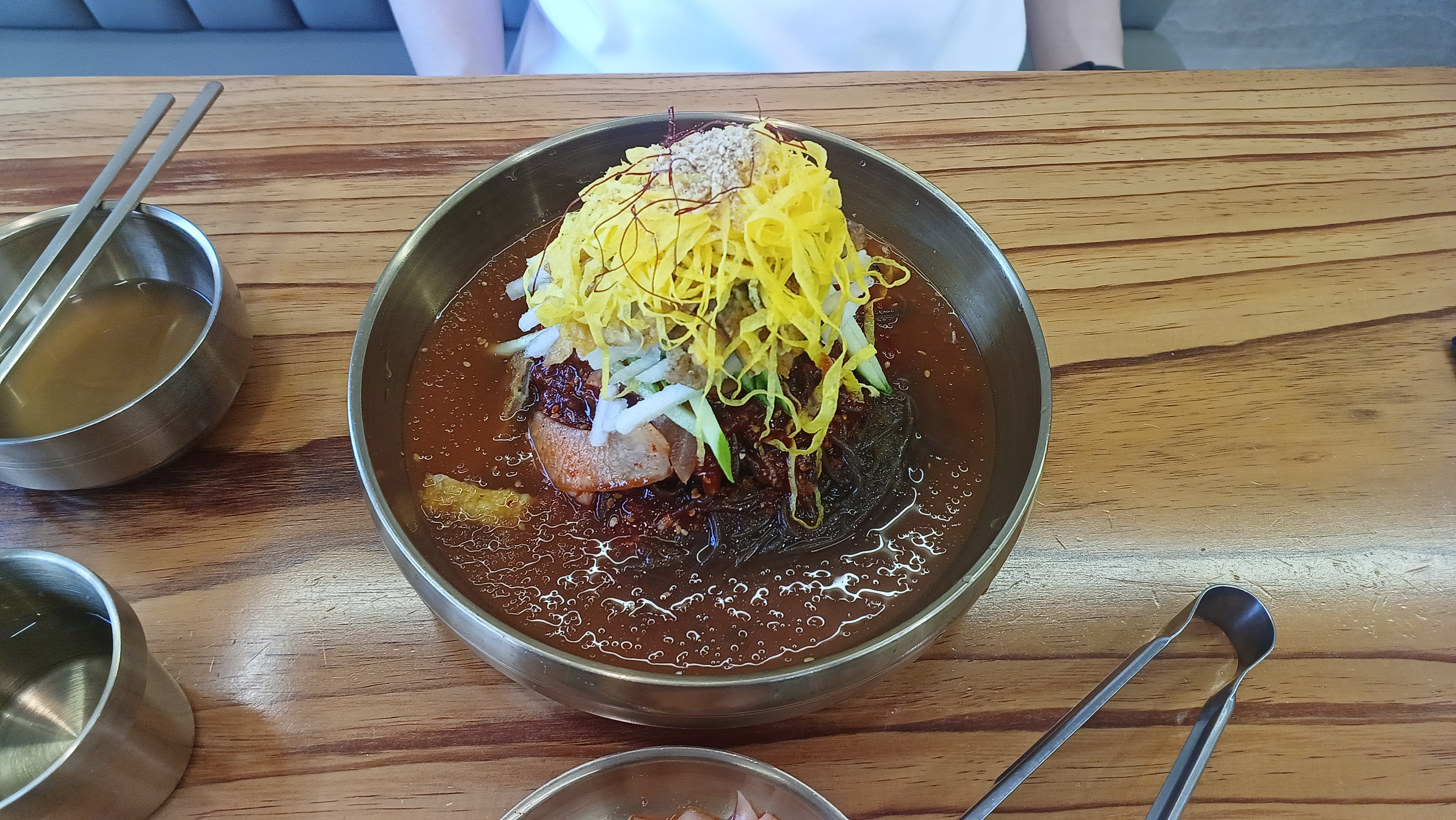 이설옥 진주냉면은 소 사골과 9가지 해산물로 우려낸 깊고 시원한 육수가 일품인데요. 특히 고명으로 듬뿍 올라간 육전은 냉면의 감칠맛을 더욱 풍부하게 만들어 줍니다. 쫄깃한 메밀면에 시원한 육수, 고소한 육전의 조화는 정말 최고였어요! 무더위를 싹 잊게 해주는 시원함에, 배까지 든든해지는 완벽한 한 끼였습니다.