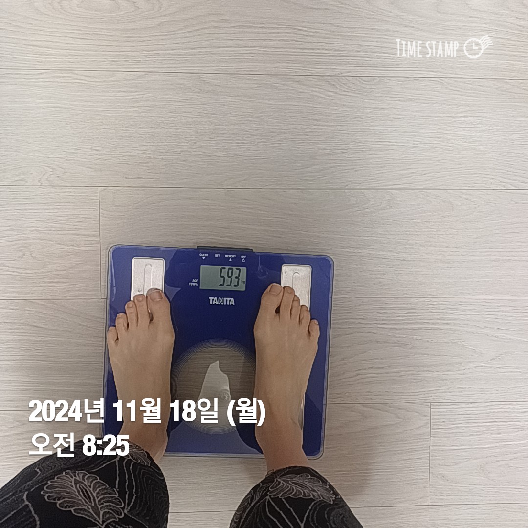 오늘 부터 다이어트 하기로 해서 아침부터 신경을 써서 몸무게를 재어보니 59.3 ㅠㅠ