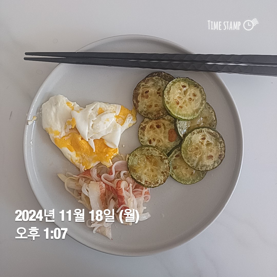 점심은 간단하게 호박, 계란, 크래미를 구워먹었다
