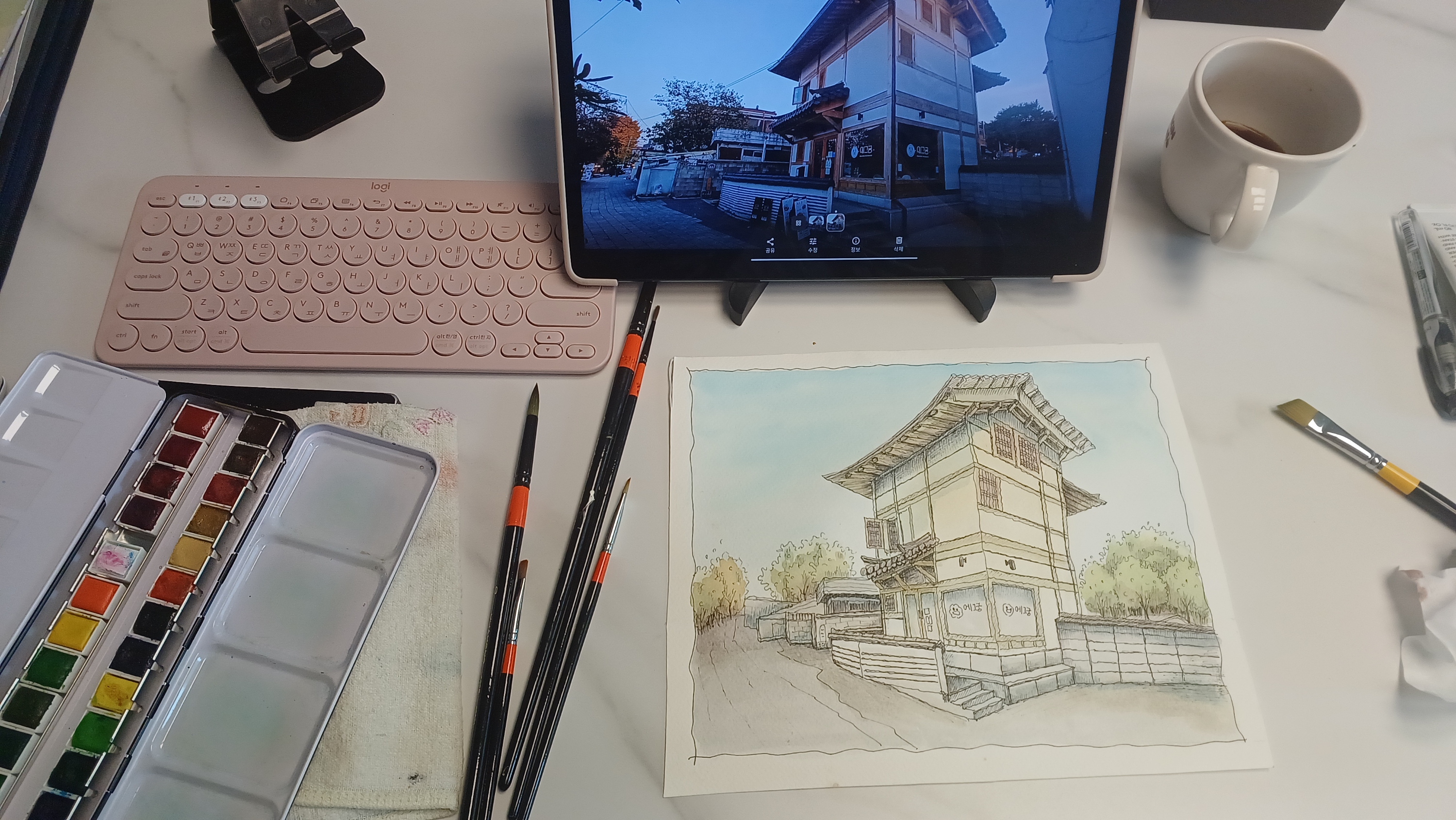아들은 면접준비한다고 오늘도 일찍 집에 와서 나도 덩달아 조용히 하며 그림 마무리 했다